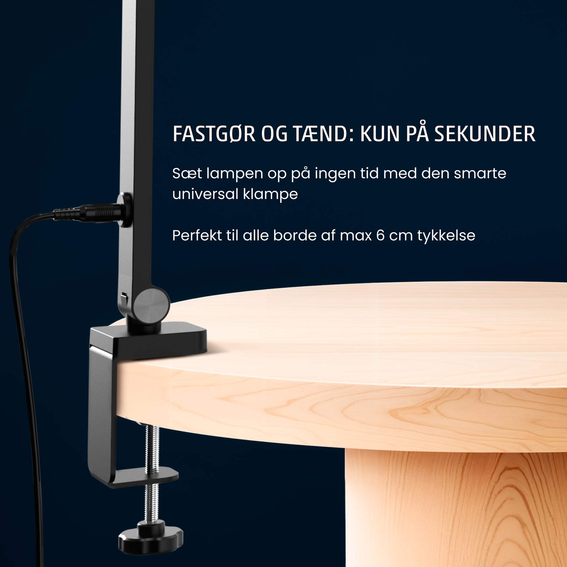 Du kan fastgøre Flexlampen til alle borde med en tykkere på max 6 cm.