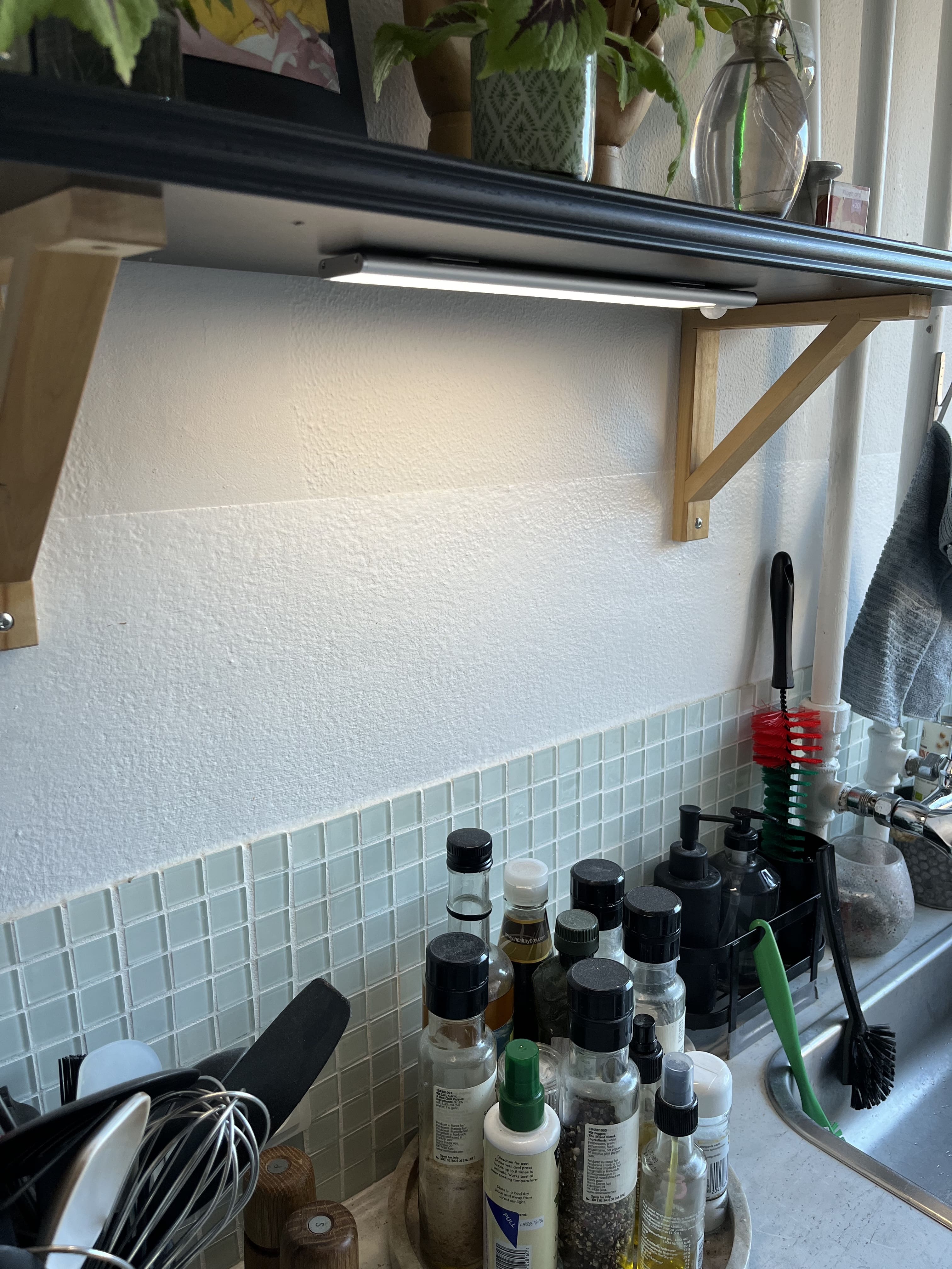 Lysbaren er justerbar og hvor du kan ændre både lysstyrke og farvetemperatur. Hold knappen inde for at skifte fra kraftig belysning til et dæmpet, hyggeligt lys – perfekt til alt fra køkkenarbejde til afslapning.