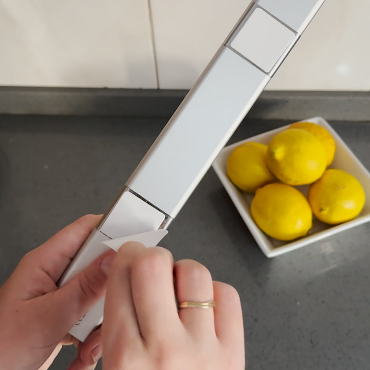 Lad os sige du vil have den under dit køkkenskab. Start altid med at sørg for at stedet du vil montere lysbaren er en ren, glat og tør overflade. Sæt de to beslag på lysbaren hvor der er en magnet ikon og tag mærket af tapen der sidder på beslagene. Så placerer du lysbaren, hvor end du vil have den til at sidde, imens besalgene sidder på den. Så presser du den godt op i 30 sek. For at sikre dig at tapen hæfter bedst muligt, anbefaler vi at tage lysbaren af beslagene når du har sat dem op og vente med at sætte den op igen til dagen efter.