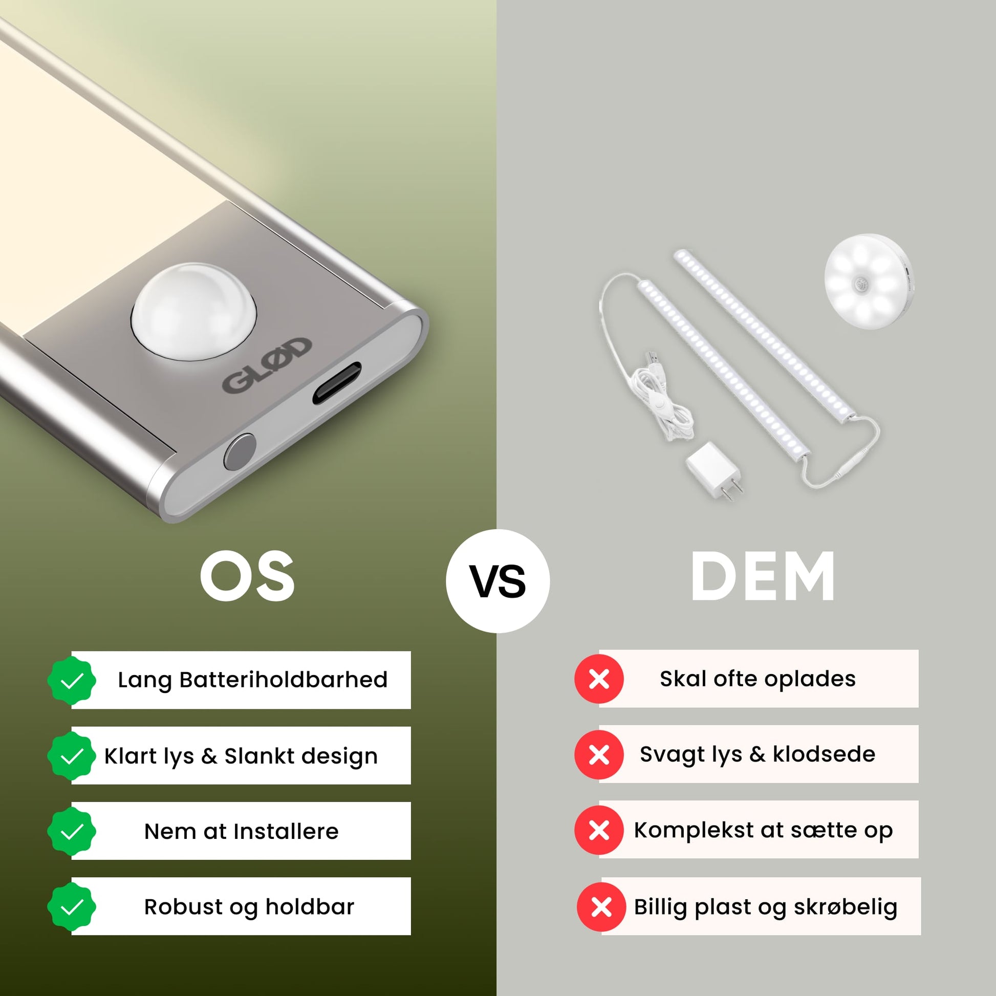 Vores LED lysbar overstråler andre lignende lamper med dets kraftfulde batteri, smarte energibesparende sensor og robuste aluminium i høj kvalitet. Medfølger bekvemt USB-C ledning til opladning