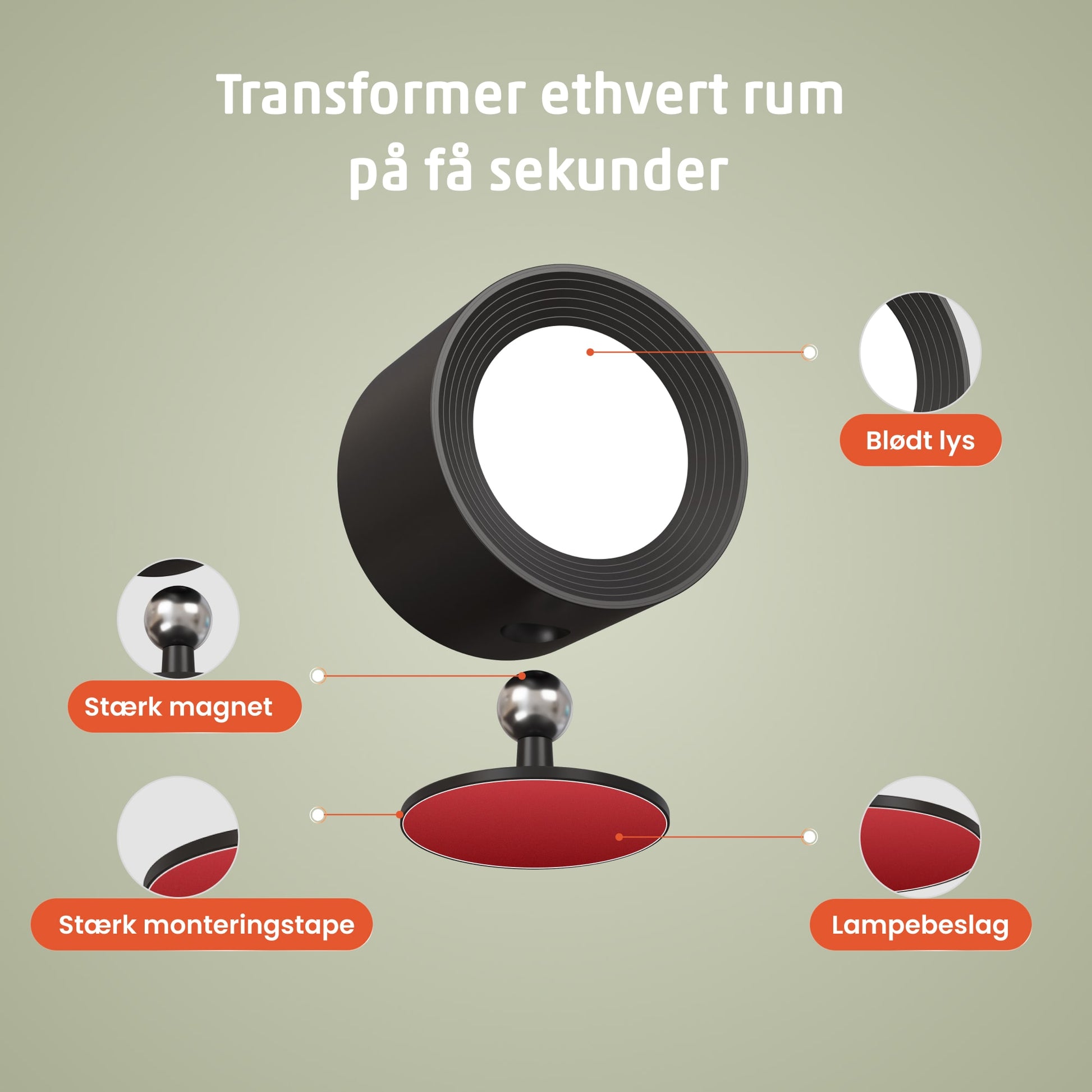 Den dobbeltklæbende tape er designet til at blive siddende, så lampen ikke glider, hænger eller falder af, selv ved daglig brug.