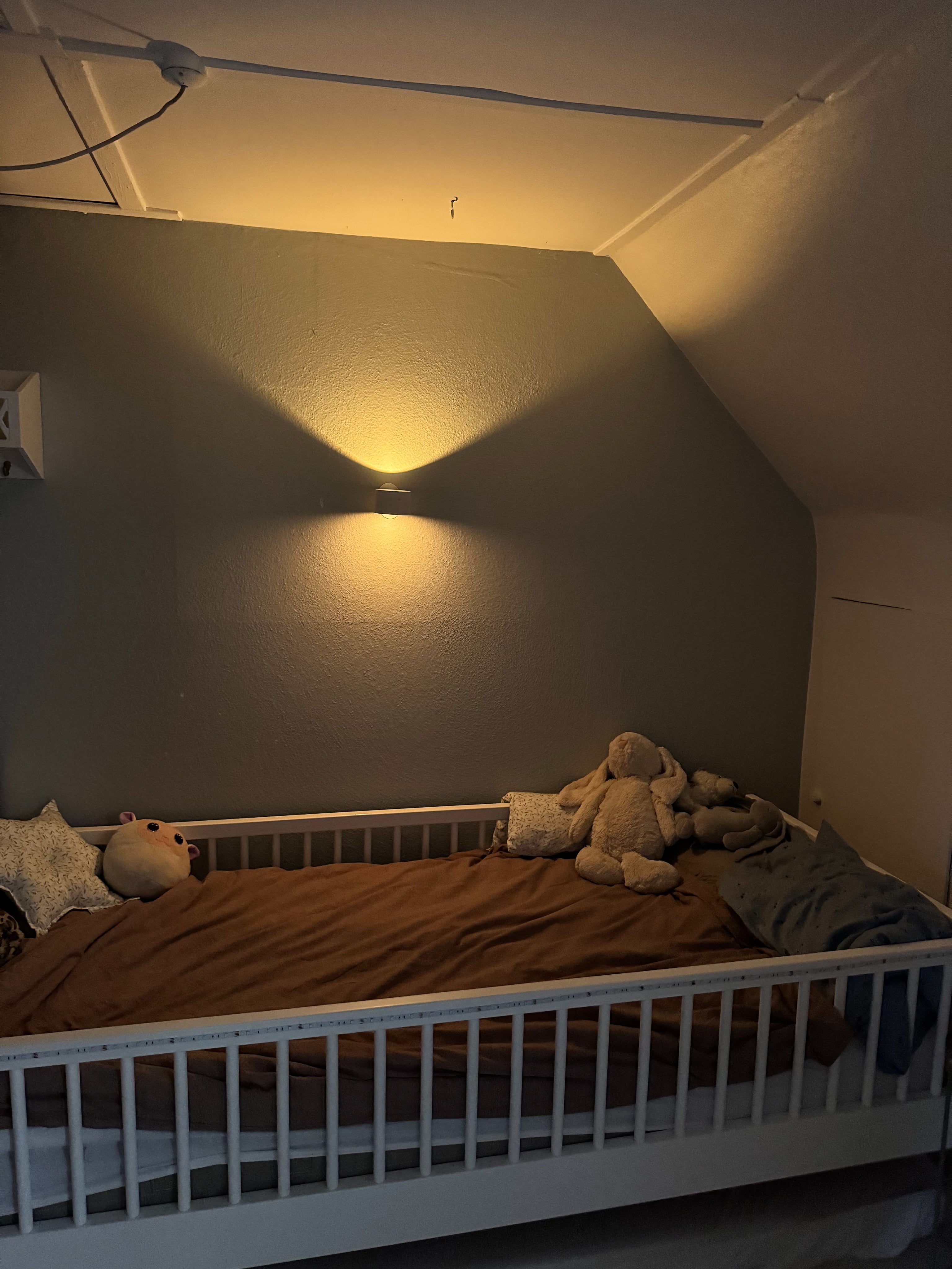 - På vægge med fx savsmuldstapet og glasvæv, anbefaler vi kun at bruge skruerne, så tapetet ikke rives af, hvis du senere vil tage lampen ned.
